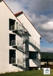 Außenwendeltreppe über 3 Geschosse, Stahlkonstruktion,
