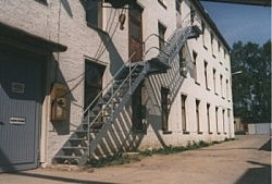 Nottreppe parallel zur Außenwand, Stahlkonstruktion,