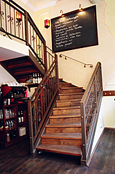 Harfe für eine Steintreppe in Vierkanthohlprofil-Konstruktion.