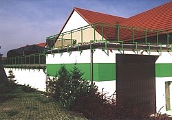 Galeriegeländer, im Radius gebogen, mit Zierstäben, Farbbeschichtet