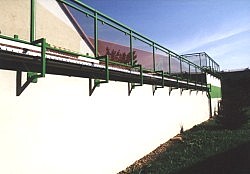 aus Stahlprofil, feuerverzinkt, pulverbeschichtet, Führung: VS-Glas