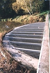 Schutzgitter an einer Wehranlage, Stahlträger mit
