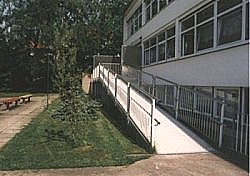 Aufgang mit Geländer, Podest und Sichtschutzwänden,