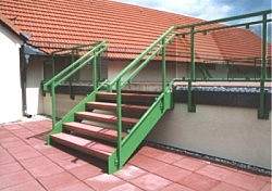 Rohrtragwerk, Oberfläche lackiert, Terrazzostufen geklebt