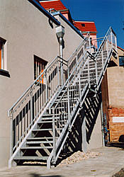 Treppe an einem Bürohaus (Hinterseite) Stahlkonstruktion, feuerverzinkt.