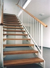 Treppe mit Seitenwangen aus Stahl, Geländer aus