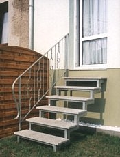 Freitragende Mittelholmtreppe im Außenbereich aus